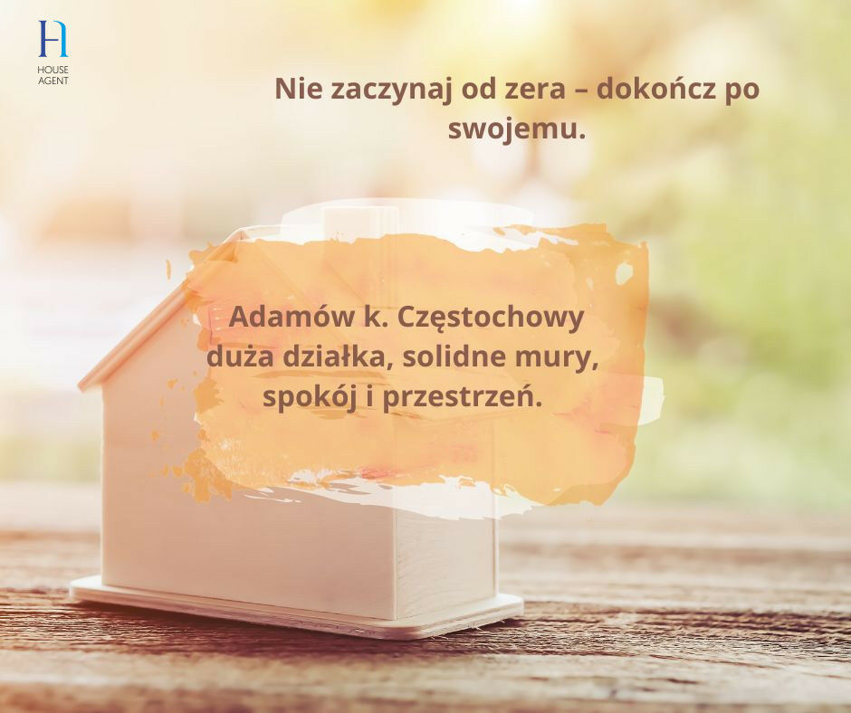 Dom z potencjałem w Adamowie k. Częstochowy - duża działka 2100 m², spokojna okolicaNa sprzedaż dom w stanie surowym zamkniętym, położony w malowniczej miejscowości Adamów, gmina Kłomnice, zaledwie 30 minut od Częstochowy. To miejsce dla tych, którzy cenią spokój i przestrzeń.