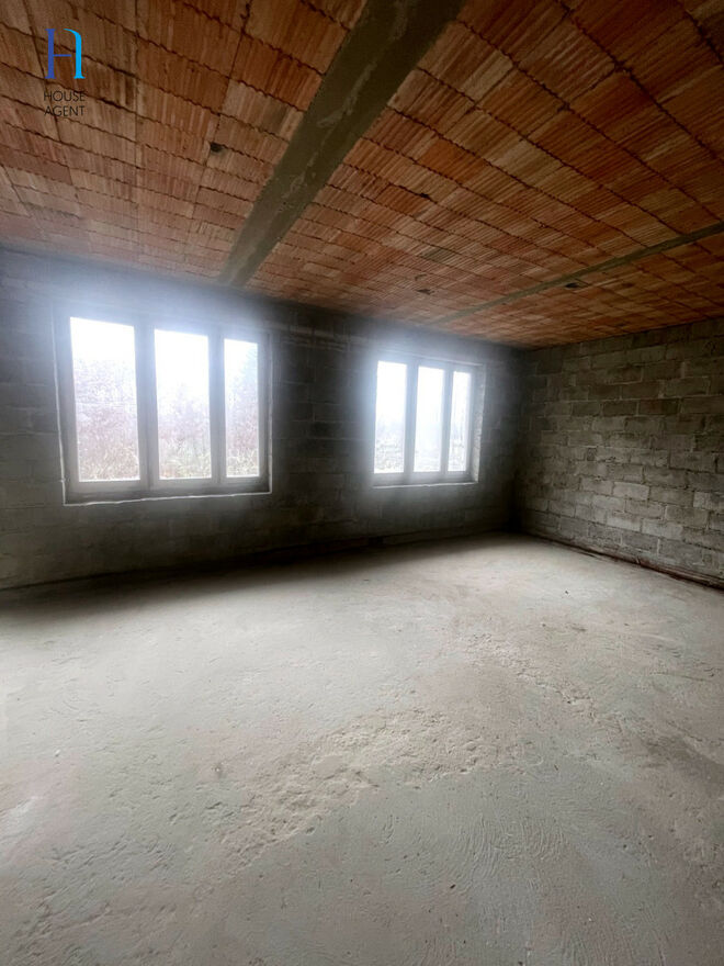 Dom dwukondygnacyjny, w stanie surowym, zbudowany z białego pustaka, posadowiony na dużej, ustawnej działce objętej miejscowym planem zagospodarowania przestrzennego. Stan pozwala na pełną aranżację według własnych potrzeb i stylu.